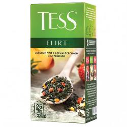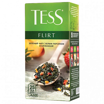 Чай зеленый TESS Флирт с кусочками персика и клубники – зеленый чай с белым персиком и клубникой, обладающий выразительной, нежной композицией с целым букетом оттенков и полутонов. Легкая терпкость зеленого чая смягчается свежим, сочным вкусом белого персика и тонкой, естественной ноткой клубники.Вы просматривали