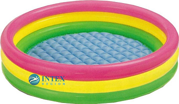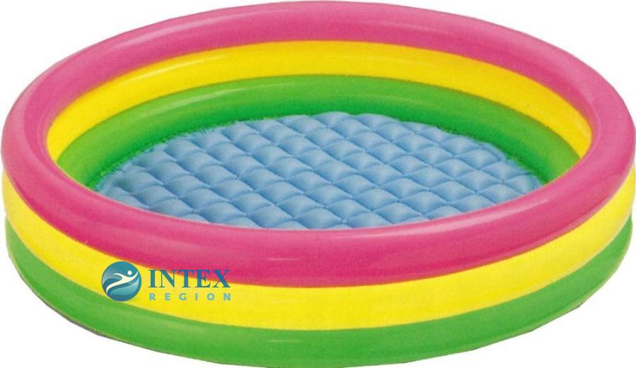 Три разноцветных надувных бортика - это замечательный яркий бассейн для детей. Такой детский надувной бассейн емкостью 173 литра позволит Вашему ребёнку прекрасно провести время в летнюю жаркую погоду. У бассейна, красивая радужная окраска. Мягкие надувные бортики способствуют уюту и комфорту.Вы просматривали