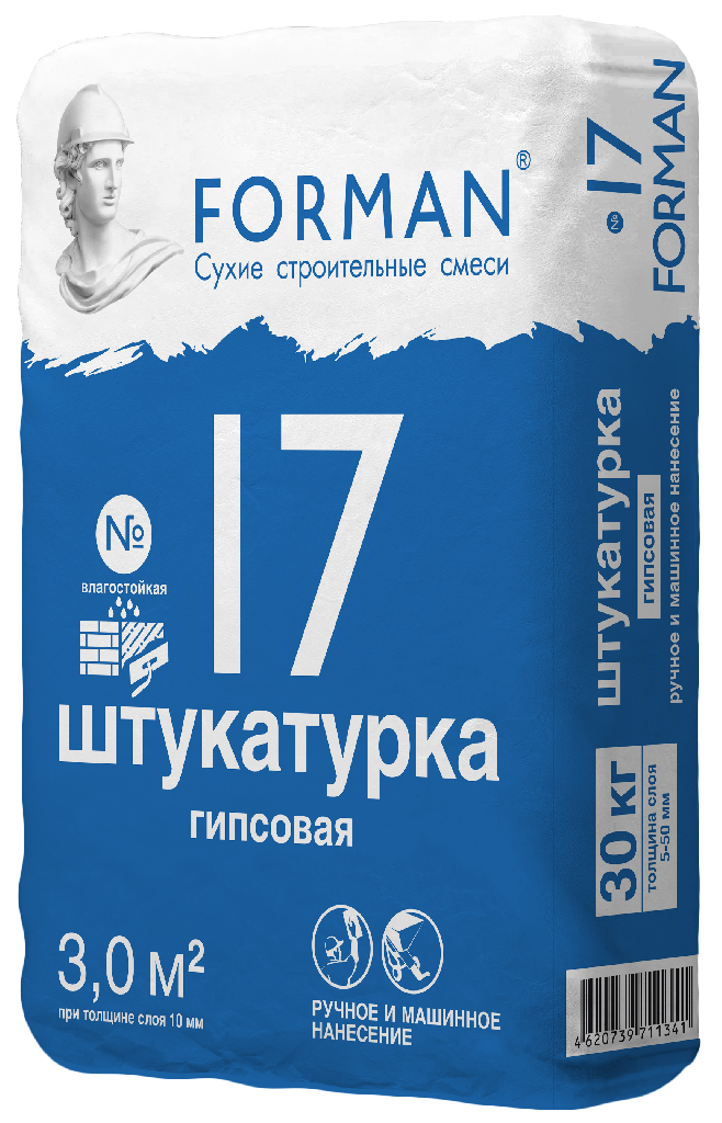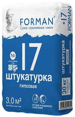Штукатурка гипсовая влагостойкая Forman/Форман №17 ручного и машинного нанесения 30кг
