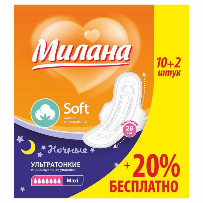 Прокладки ультратонкие Милана soft maxi 10+2шт