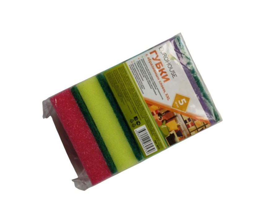 Губка для посуды XXL EuroHouse с абразивным слоем (в упак.5шт)
