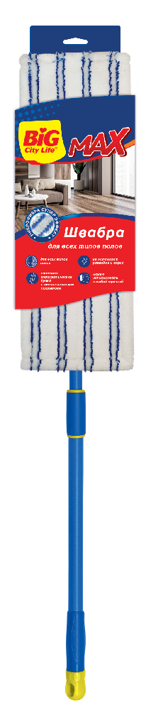 Швабра с насадкой микроворс с нейлоном 42*12см телескопическая ручка BIG City Max
