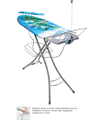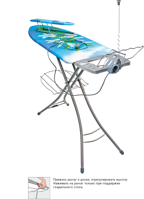 Гладильная доска с плавной регулировкой по высоте, EURO подставкой под утюг и съемным подрукавником Преимущества: - плавно регулируемая высота до 93см - электросоединитель 1,9 м - розетка с держателем для провода утюга - полка для белья - держатель для плечиков - максимальная нагрузка на гладильную поверхность 25кг - индивидуальная термоупаковка - удобное хранение Габаритные размеры: - гладильная поверхность (ДхШ) – 1220х400мм - в сложенном виде (ДхШхВ) – 1530х410х60мм - вес – 8,5кг Материал: - гладильная поверхность – металлическая основа - чехол – хлопокВы просматривали