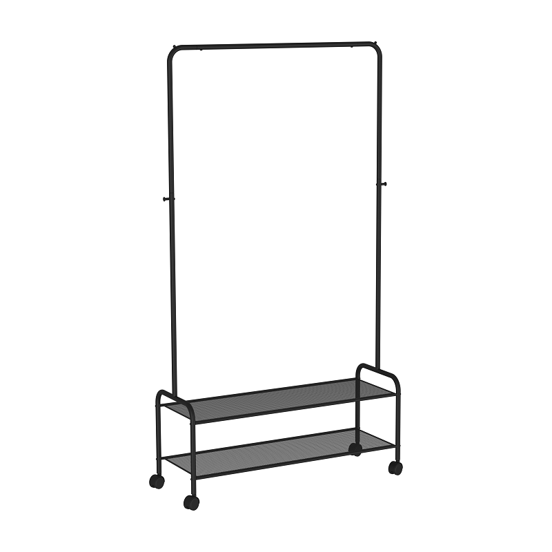 Вешалка напольная гардеробная Валенсия 32М с двумя полками, на колёсах черный